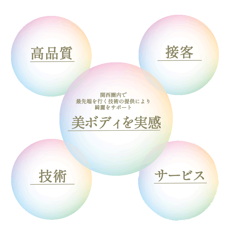 私たちのお店は、「結果重視」を意識しており、お客様の肌やボディの悩みを改善し、今よりもっと自分を好きになって頂くためにサービスを提供しています。